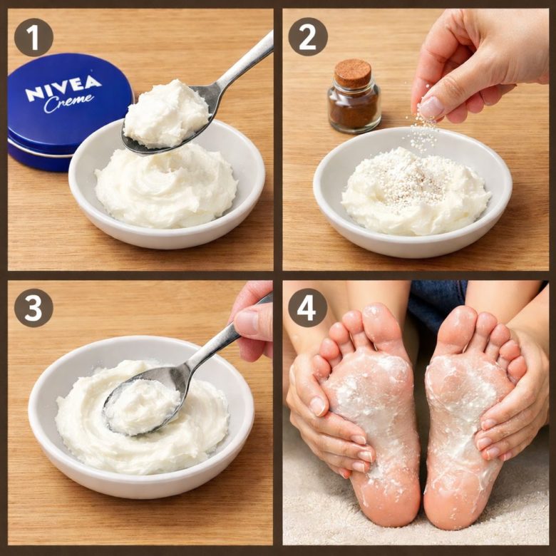 基本は、ニベアクリームに“ある粉”を混ぜて、それを足裏に塗るだけ。これだけです。